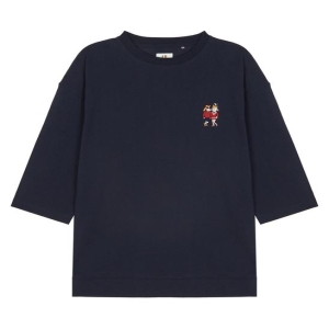 헤지스 네이비 퍼피자수 면 7부 소매 티셔츠_HZTS9D974N2
