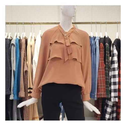 Ab.f.z 1  진주 브로치 포인트 프릴 블라우스 AOT4BB10J