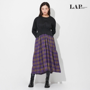 LAP 라운드넥 배색체크 롱프릴 원피스_AKEWO273 - 에누리 가격비교