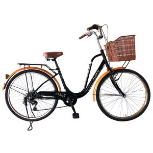 제조사 : 지멘스 등록일 : 2018.02 품목 : 자전거종류 : 여성용자전거프레임 : 스틸,하이텐강바퀴 : 26인치(66cm)폭 : 1.75인치(4.4cm)기어 : 7단핸들타입 : 라이저바,시티형변속레버 : 그립시프트브레이크 : 캘리퍼브레이크,밴드브레이크안장 : 스프링안장특징 : 바구니,짐받이,흙받이색상 : 민트화이트,레드화이트,블랙골드,핑크골드무게 : 14.5kg