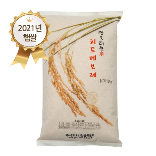 브랜드 : 청솔알앤에프 등록일 : 2019.11 품목 : 쌀종류 : 백미품종 : 히토메보레생산년도 : 2019년 이전원산지 : 국산