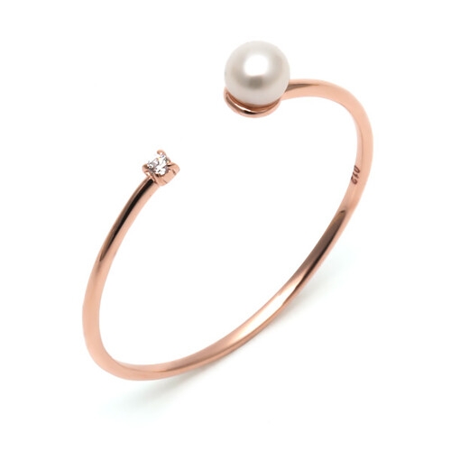 비앤비골드 14K 반지 원큐빅 X 담수흰진주 오픈 반지 NPR23337