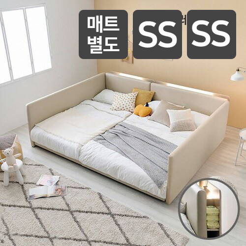 제조사 : 레이디가구 브랜드 : 레이디가구 등록일 : 2020.06 분류 : 패밀리침대구성 : 침대프레임사이즈 : 슈퍼싱글+슈퍼싱글매트타입 : 매트미포함프레임 : 저상형,하단밀폐형헤드 : 수납헤드깔판형태 : 통깔판특징 : USB포트,조명포함,사이드안전가드,라돈안전인증주요재질 : 원목커버재질 : 인조가죽(PU)침대크기(가로x세로x높이) : 234x217x82cm