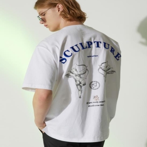 TNGT 남성 오버핏 엔젤 자수 티셔츠_TGTS0B714WT