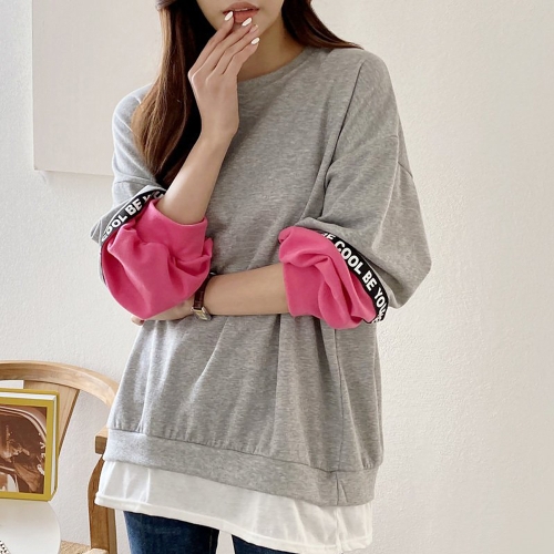아이우먼 빅사이즈 101 투톤벌룬레터링맨투맨 DILC569