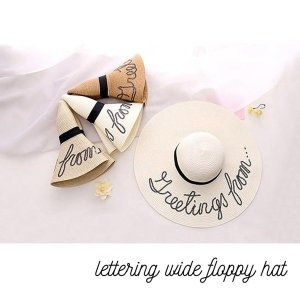 W06B083 레터링 와이드 썬캡 플로피햇 스팽글 왕골모자 복수할인