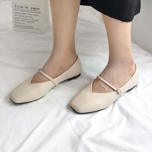 오노마 스트랩 플랫 슈즈 데일리 캐주얼 여성 가죽 로퍼  W88C48A