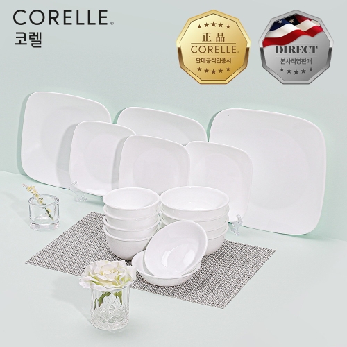코렐 저스트화이트 4인 코리안 사각 세트 16P