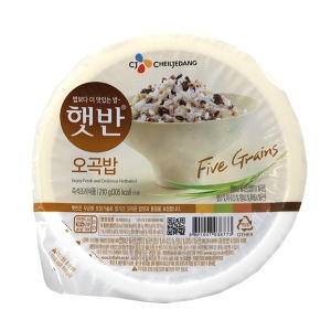 브랜드 : CJ제일제당 등록일 : 2005.01 품목 : 즉석밥보관방법 : 상온보관조리시간 : 전자레인지(2분),끓는물(10분)원료 : 멥쌀(국산),찹쌀(국산),팥,수수,기장,흑미표시기준분량 : 210g열량 : 330kcal