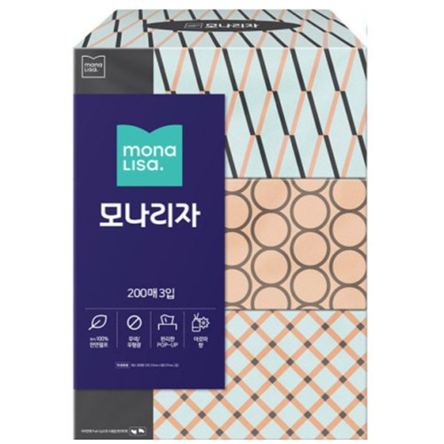 모나리자 미용티슈 200매 (3입) [8팩(24입)]