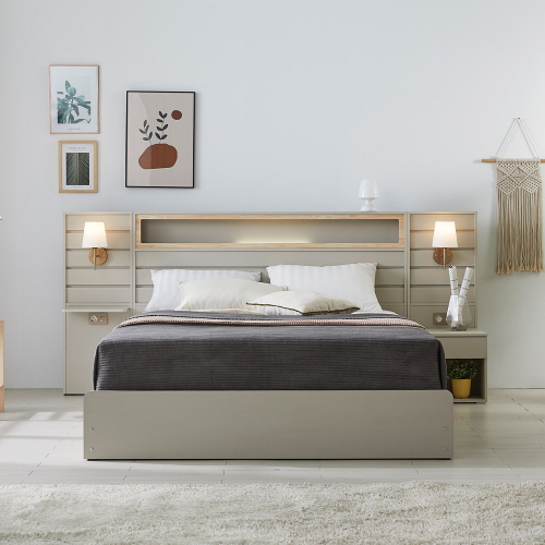 베디스 호텔식 피렌체 편백 수납형 LED침대 SS+선반패널 [매트별도]