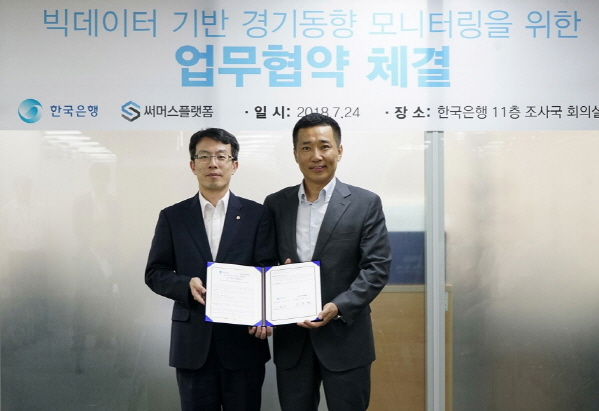 써머스플랫폼-한국은행, 경기동향 모니터링 강화를 위한 빅데이터 활용 MOU 체결 |