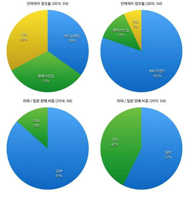 가격비교사이트 에누리닷컴의 분석에 따르면 안마의자 시장 점유율이 올해 4월 기준 ‘바디프랜드’가 80%로 1위, ‘휴테크산업’이 13%로 2위, 그 외 기타 제품들이 7%의 점유율을 보이고 있다.