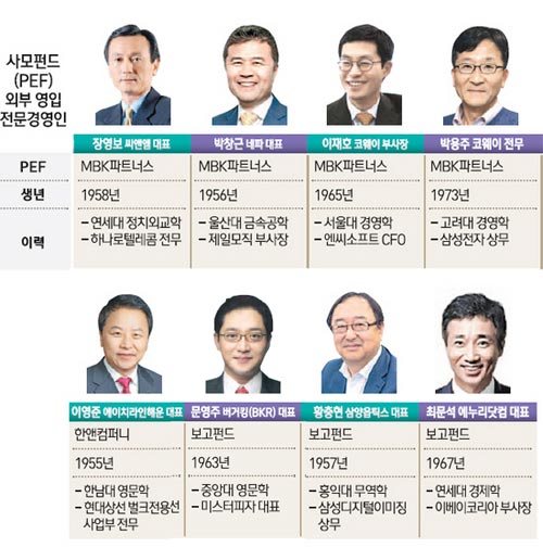 사모펀드(PEF)가 전문경영인들의 주요 활동무대가 되고 있다. PEF가 도입된 지 10년이 넘고 이를 통해 조성된 자금이 50조원을 넘으면서 기업 인수합병(M&A)을 주도해 전문경영인들을 적극 영입하고 있기 때문이다. 국내 전문경영인들은 한 그룹에서 오래 일하며 계열사를 넘나들다 은퇴하는 것이 일반적이었지만 이제는 PEF가 인수한 기업에서 소신껏 실력을 펼칠 수 있는 기회를 찾고 있다.