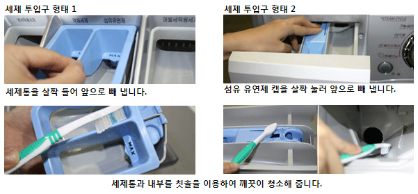 <세제통 청소 방법: 약 1주일에 1회 청소 필요>