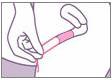 손을 깨끗이 씻고 포장을 벗긴 후 제거용 끈이 내통 밖으로 나와 있는지, 끈을 뒤로 살짝 당겨서 쉽게 끊어지지 않는지 확인합니다. (만약 끈이 없거나 단단히 고정되어 있지 않다면 사용하지 마세요.) |