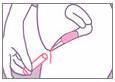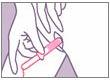 외통의 둥근 끝을 질 입구에 대고, 탐폰을 잡고 있는 손가락이 몸에 닿을 때까지 외통을 부드럽게 위쪽으로 비스듬히 삽입해줍니다. |