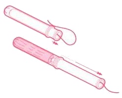 외통의 손잡이를 잡고 내통과 외통을 모두 부드럽게 빼냅니다. 탐폰이 삽입되었습니다. 마지막으로, 제거용 끈이 몸 밖으로 나와 있는지 확인하세요. |