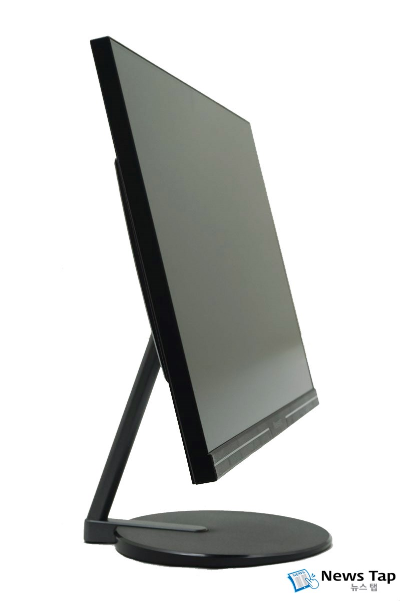 베젤에서 시작된 슬림함은 스탠드에서 절정에 도달한다. 얇게 뽑아내어 답답함이 해소되며, 원형 받침대가 안정감을 더해주고 흔들림 없이 모니터를 잡아준다.