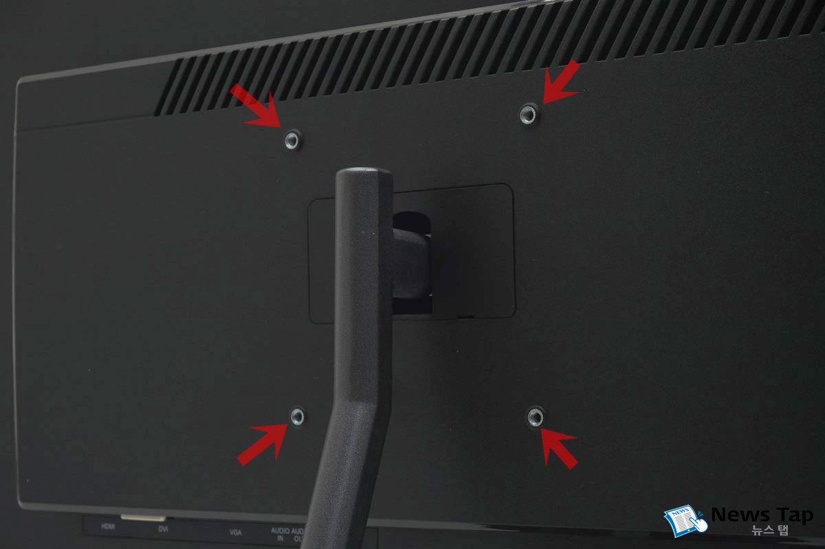 또한 100*100 규격의 베사마운트홀이 있어 모니터암에 장착해 쓸 수 있으며, 또는 멀티스탠드에 부착해 활용도를 높일 수 있다.