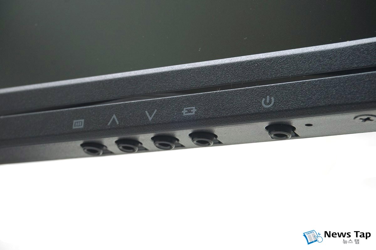 모니터 설정을 위한 버튼은 오른쪽 아래 부분에 있다. 전원 버튼을 포함해 5개의 버튼으로 구성되어 있다. OSD 메뉴 호출, 메뉴 이동 등 직관적 형태로 되어 있어 조작은 쉬운 편이다.