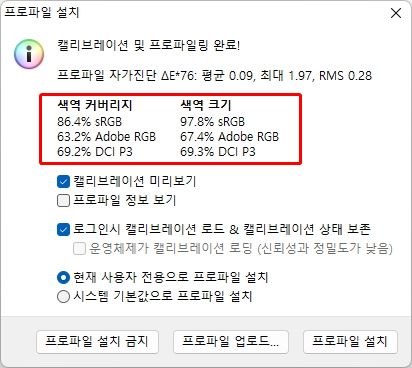 터치가 가능한 기능성 모니터이지만 고품질 패널을 사용해 화질은 우수한 편이다. LCD 모니터의 색 재현율 기준이라 할 수 있는 sRGB의 경우 직접 측정해 보니 색역 크기는 97.8%로, 거의 100%에 가깝게 나타났다.