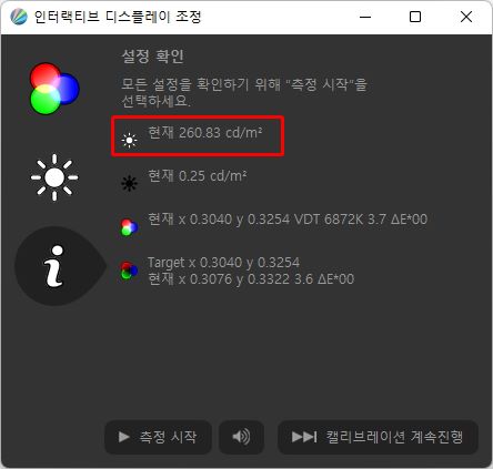 휘도 특성도 양호하다. 제품 사양에는 250cd/m2로 표기되어 있으며, 직접 측정해보니 약 260cd/m2로 나타났다. 일반적인 모니터 수준의 밝기를 보이고 있다