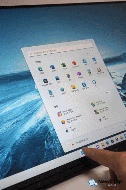 ▲ 모니터 패널에는 터치 기능을 넣었다. 사진처럼 윈도우에서 시작 버튼을 손끝으로 누르면 메뉴가 펼쳐진다.