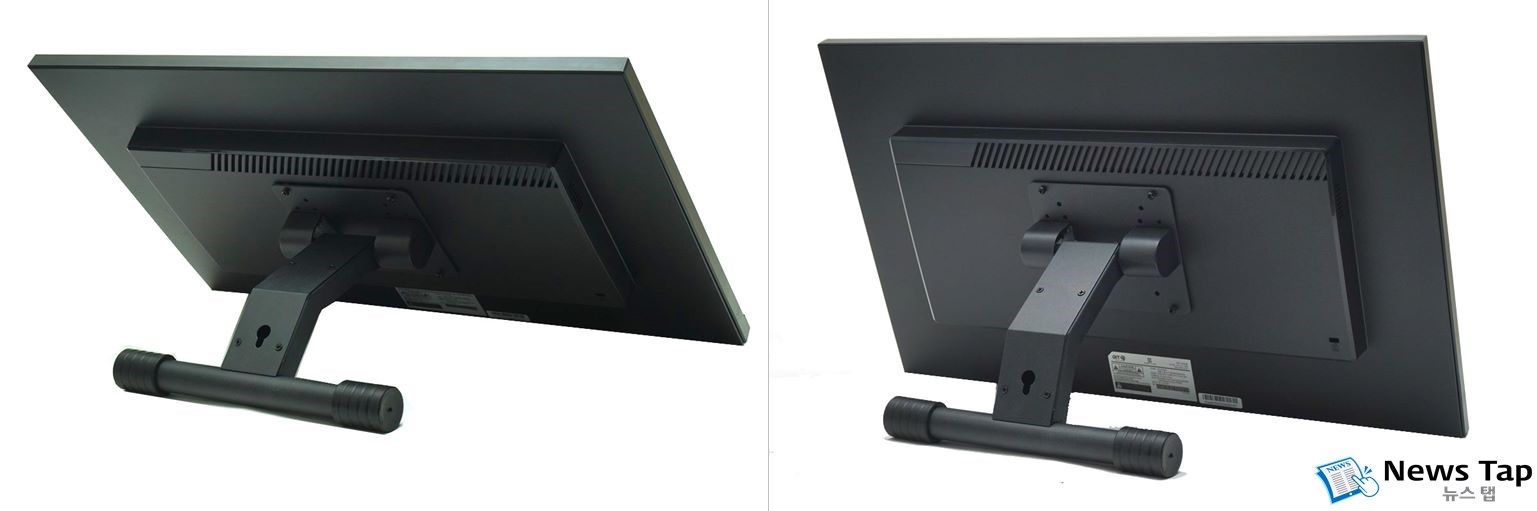 모던하면서도 스타일리시한 느낌은 모니터 뒤쪽으로 이어진다. 깔끔한 올블랙이며, 열이 빠져나가는 에어홀도 감각적인 디자인으로 깔끔하게 처리했다.