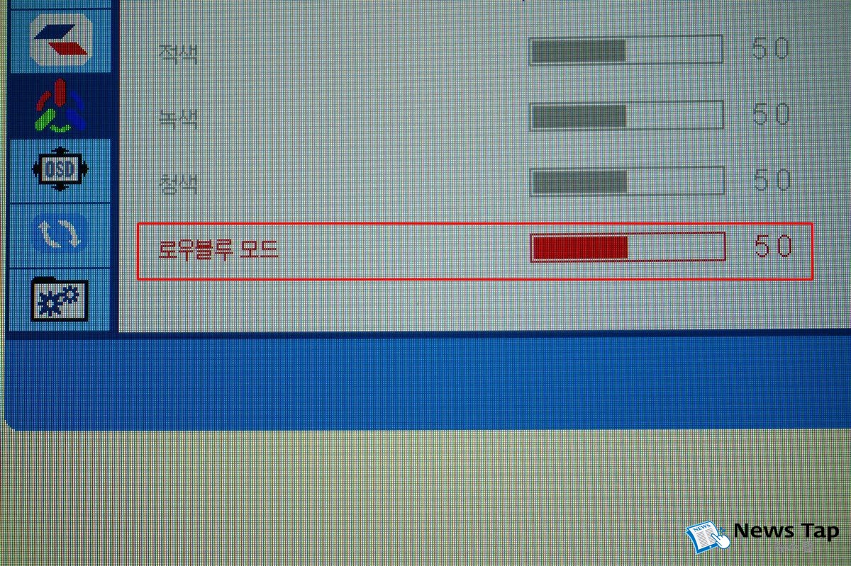 안 질환의 원인이 되는 것으로 알려진 청색 광을 줄이기 위한 로우 블루라이트 기능도 넣었다. 사용자가 필요에 따라 블루 계열의 파장 출력 정도를 낮출 수 있다. 한편 패널 표면은 안티글레어 코팅 처리해 난반사를 최소화한다. 주변의 강한 광원이 반사되는 것을 억제해 눈의 피로도를 낮춘다.