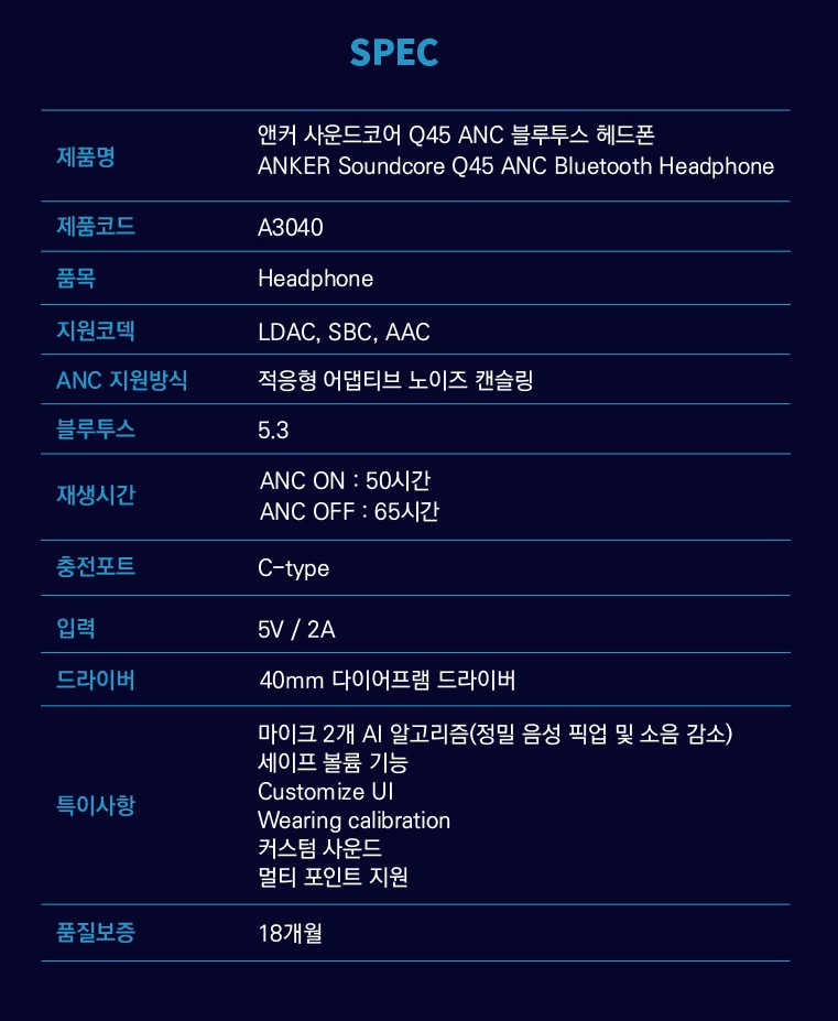 본사 사이트에서 가져온 스펙입니다.