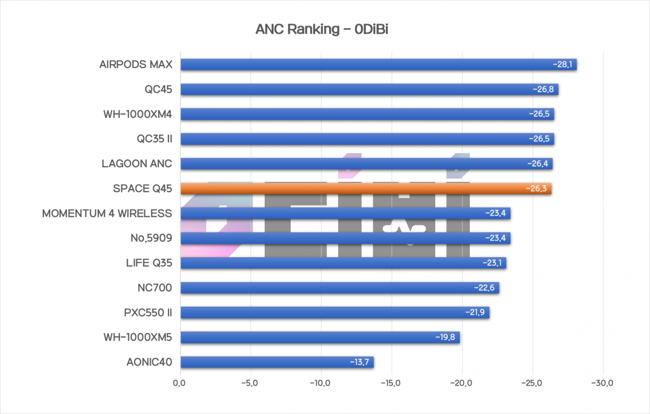 ANC 전체 감소량이 무려 26.3dB로 3~40만 원대 제품들과 비슷한 수준입니다.