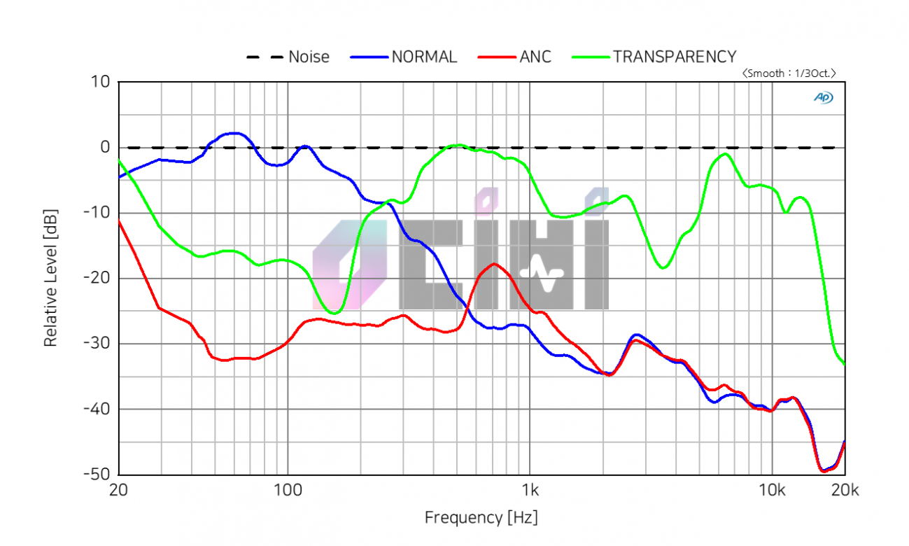 ANC 피크값이 아주 높은것은 아니지만 전반적으로 크게 튀는 부분이 없는 좋은 성능입니다.