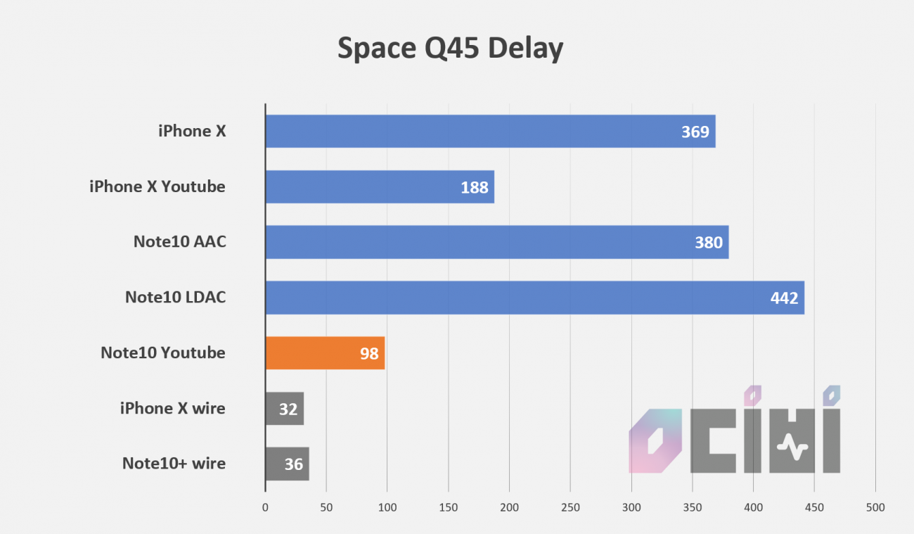 LDAC 사용시 442ms로 딜레이가 긴 편이지만 버퍼를 충분히 확보해 끊김이 없습니다. LDAC은 고음질로 음악을 감상하기 위한 코덱으로 실제 사용에 문제가 되진 않았습니다.