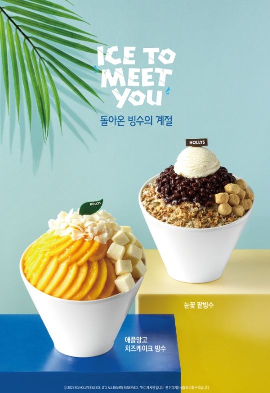 | ▲ 할리스 ‘애플망고 치즈케이크 빙수’와 ‘눈꽃 팥빙수’ | ||