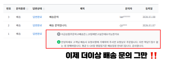 배송 날짜를 기다리고, 기사님과 일정을 다시 조율해야 하는 번거로움.