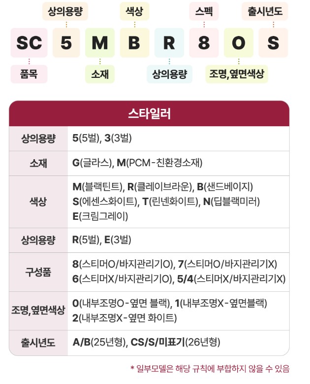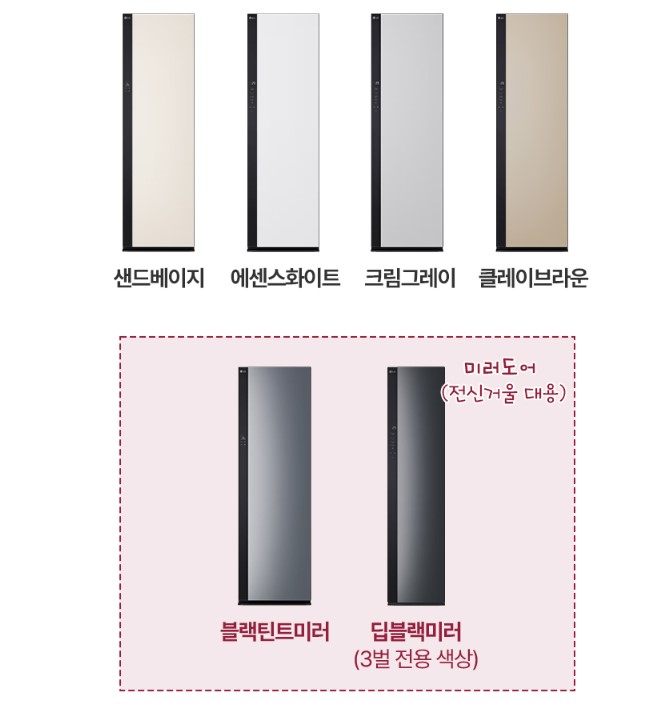 스타일러 색상은 총 6가지로 구성되어 있습니다.