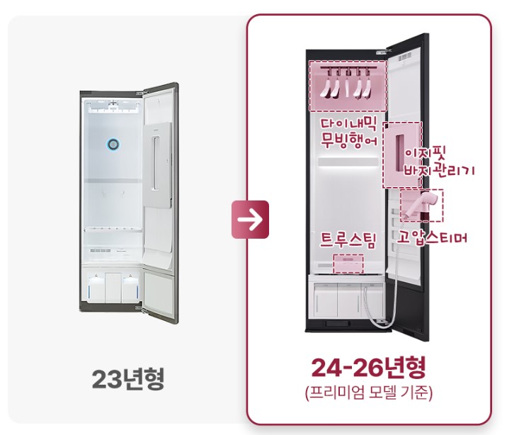 용량 선택의 폭 확대 & 편의기능의 차이가 있습니다.