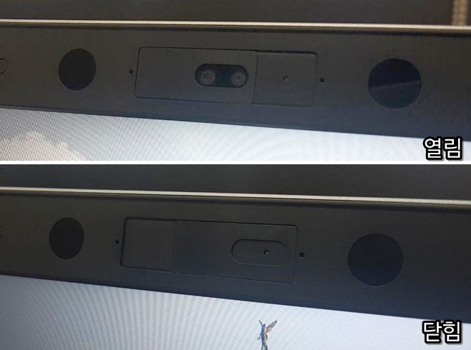 일단 물리적인 부분에 있어서 노트북들의 기본적인 부분을 먼저 살펴보면, 얼굴 인식을 통한 카메라와 센서를 살펴볼 수 있다.