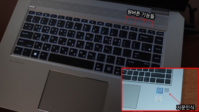 이외에도, HP EliteBook 라인업의 기본적인 기능인 지문인식, 키보드 백라이트등은 여전히 그대로 적용되는 모습이다.