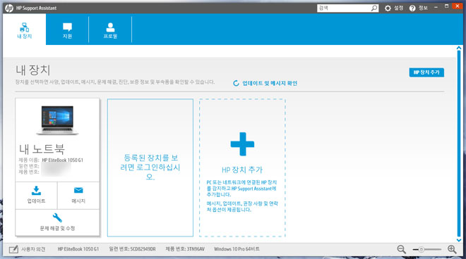 기본적으로 HP 서포트 어시스턴트를 활용해 노트북의 펌웨어, 제품 문제 등을 컴퓨터 문외한이더라도 제공 받을 수 있게 되어있다.