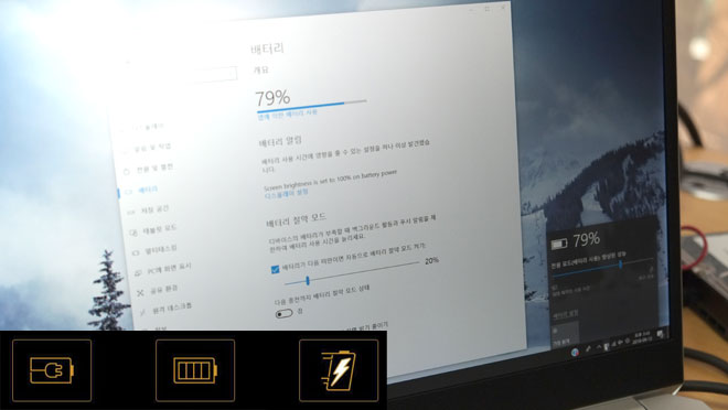 또한, 기본적인 상황에서 총 배터리 타임은 약 16시간 정도 지속하는 등 충분히 외부에서 활용할 수 있는 긴 시간을 제공한다.