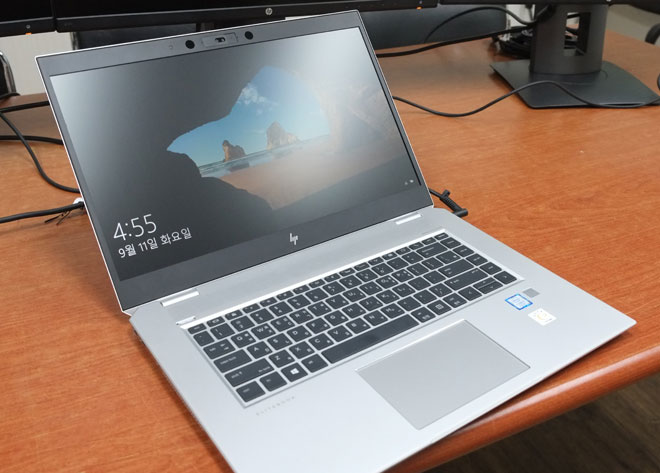 인텔 8세대 헥사 코어 CPU를 탑재하고 엔비디아의 MAX-Q 디자인을 적용해 그래픽카드가 적용되었음에도 얇은 두께와 모바일 워크스테이션급 성능을 자랑하는 'HP Elite Book 1050 G1'이다.