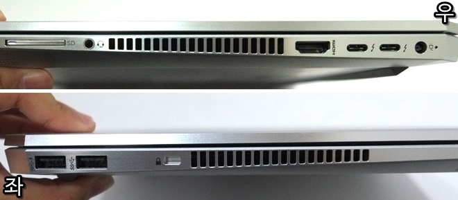 HP EliteBook 1050 G1의 포트는 좌측과 우측에 다양하게 구성되어 있다.