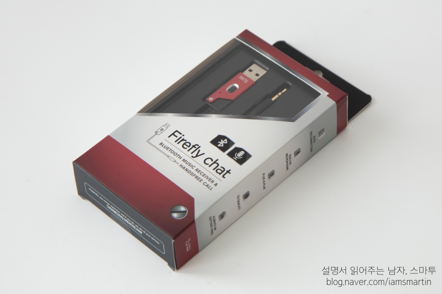 제품 박스는 꽤 고급스러워 보이네요. Firefly Chat, 단순히 블루투스 리시버 기능을 할 뿐만 아니라, 핸드셋 기능으로 전화 통화가 가능합니다.