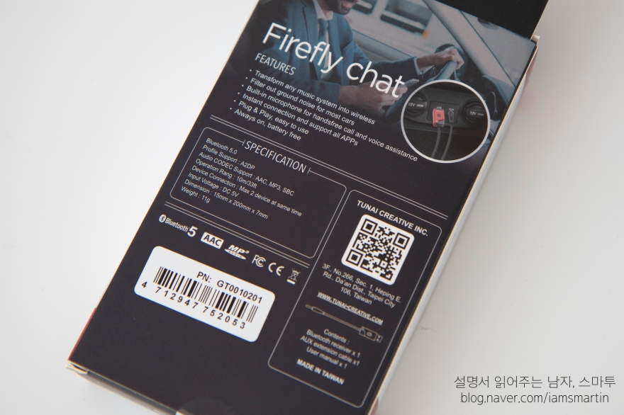 요즘 대부분의 차량에는 블루투스가 기본으로 장착되어 있습니다. 제 차는 기아 K5 2013년 형이다 보니, 블루투스가 지원은 되지만 사용하기 조금 불편합니다. 또한, 블루투스 기능이 없는 오디오를 블루투스 스피커로 사용을 할 수 있도록 해 주는 장치가 블루투스 리시버입니다. 이번에 리뷰하는 제품은 TUNAI 차량용 블루투스 리시버 Firefly Chat입니다.