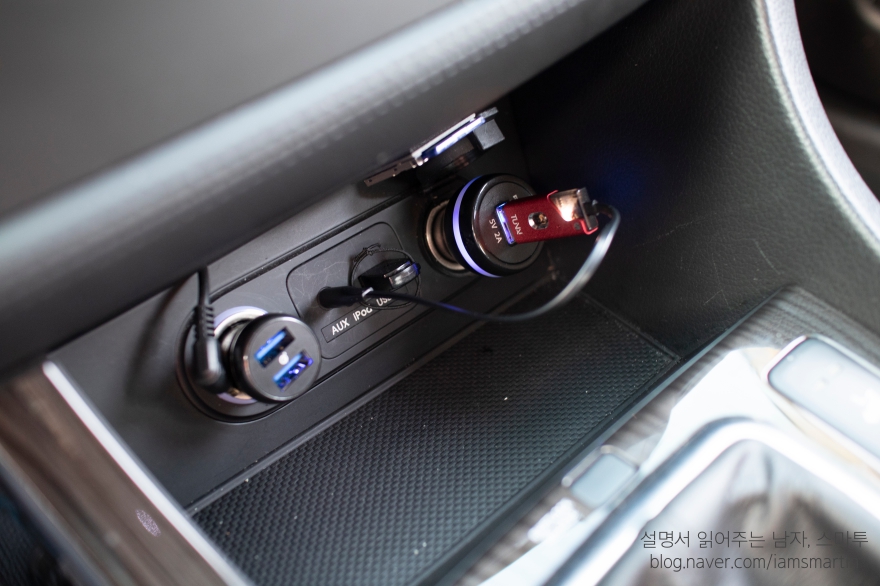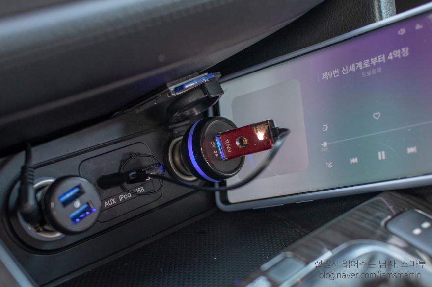제 자동차는 조금 오래되어서 USB 포트가 AUX가 사용하기 불편하게 깊숙이 숨겨져 있지만, 최근에 나온 차량들은 USB 포트와 AUX가 외부에 노출이 잘 되어 있으니 사용하기 불편하지는 않을 겁니다. 블루투스를 이용해서 스마트폰의 음악을 쉽게 감상할 수 있습니다.