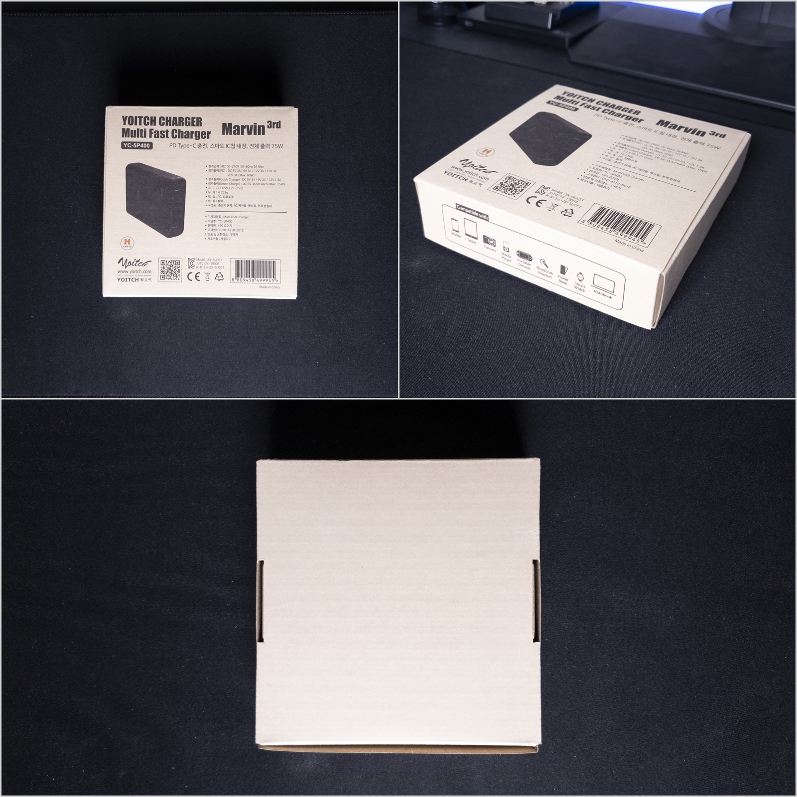 ▲ 요이치 마빈 3세대 멀티 충전기의 패키지는, 기존과 동일한 일반적인 무지 박스로 제작되었으며, 제품의 전면에는 외형과 함께, 상세한 스펙이 인쇄되어 있습니다.