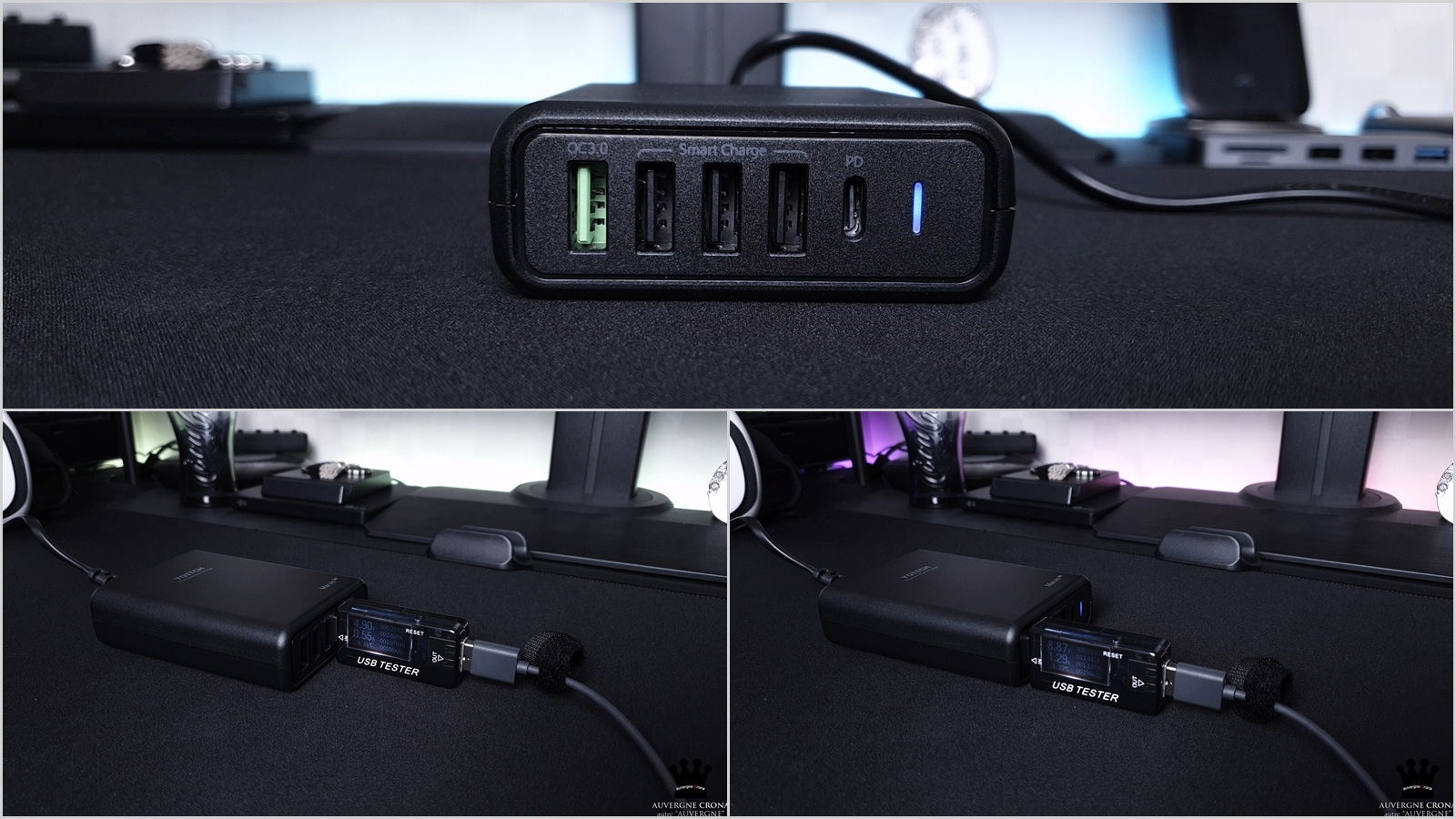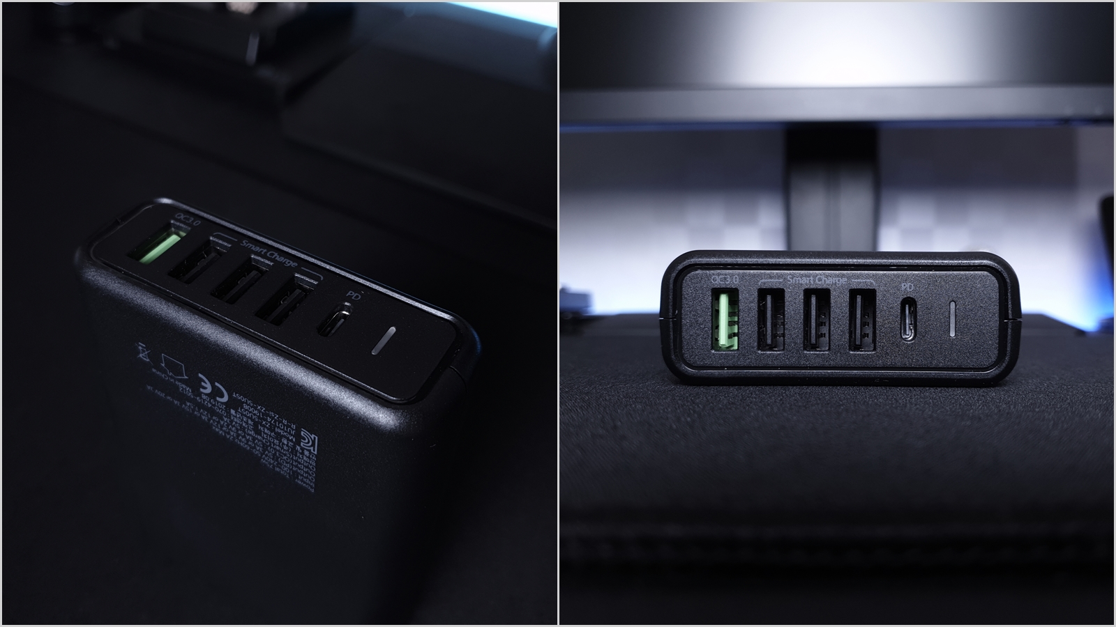 ▲ 충전 단자는, 퀵 차지 3.0을 지원하는 포트 1개와, USB PD 포트 1개, 일반적인 스마트 충전 포트 3개로 구성되어 있습니다.