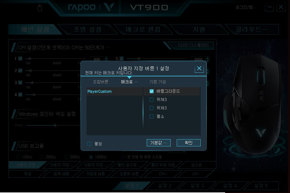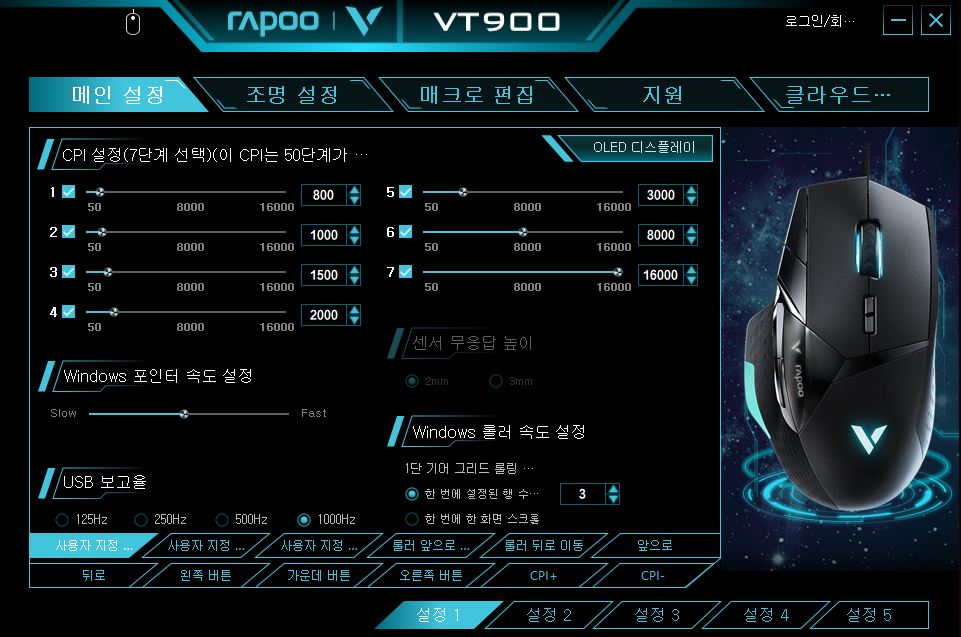 초반에 말씀드렸다시피 휠 포함 총 10개의 버튼 중에 커스터마이징 가능한 버튼이 무려 7개입니다. 이건 라푸 공식 홈페이지에서 앱을 받으면 설정이 가능합니다. 이걸로 매크로 기능을 사용해보겠습니다.